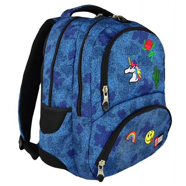 A vidám hangulatú és erős anyagból készült St. Right iskolatáska farmer hatású anyagból készült, hátizsák formájú, gerinckímélő. A kedves, varrott minták egyedivé varázsolják ezt a praktikus belső kialakítású, modern iskolatáskát.