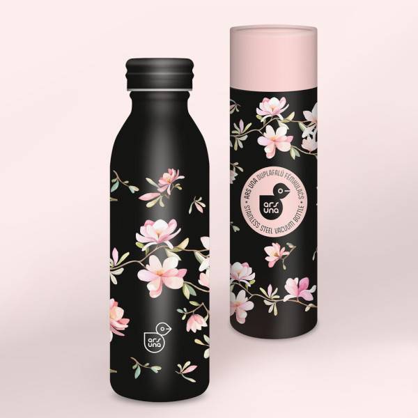 Minőségi Ars una kulacs fekete alapon virágos mintával készült. Ez a termosz praktikus választás, amikor szeretnéd az italodat 24 órán át frissen tartani. A fémkulacs dupla falának köszönhetően a bele töltött ital hőjét hosszú ideig megőrzi.