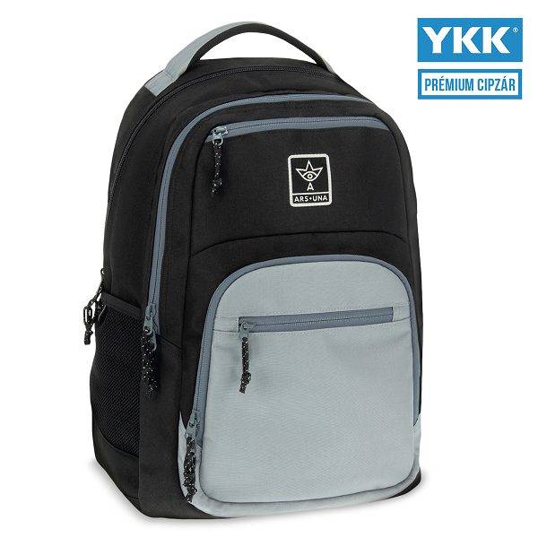 A sok zsebes, fekete Ars Una kamasz iskolatáska, hátizsák - Ash szürke betétek díszítik. A nagy méretű hátizsák alkalmas nagyobbaknak iskolatáskának, vagy kiránduló táskának is tökéletes választás.