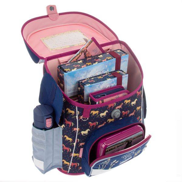 Ez a szett a lányoknak készült, akik imádják a lovakat és a természet közelségét. Az Ars Una 4 részes iskolatáska szett praktikus és stílusos kiegészítő minden iskolai naphoz: hátizsák, tolltartó, kulacs és egy uzsonnás doboz egy csomagban. A lovas minták és a természetes színek vidám, mégis elegáns hangulatot kölcsönöznek a mindennapoknak.