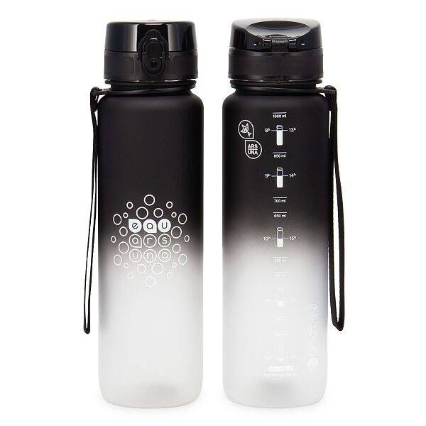 Fekete, fehér színvilágú 1 literes kulacs. A színátmenetes ombre kulacs matt színeivel hívja fel magára a figyelmet, ahogy a fekete fehér színbe megy át. Oldalán motivációs üzenetek ösztönzik a folyadékbevitelt. A cseppmentes kulacsot biztonsággal használhatják a kicsik és nagyok is egyaránt. Az Ars Una kulacsok kiváló minőségűek, BPA mentes anyagból készültek, így egészségre káros anyagok nem oldódnak ki belőle.