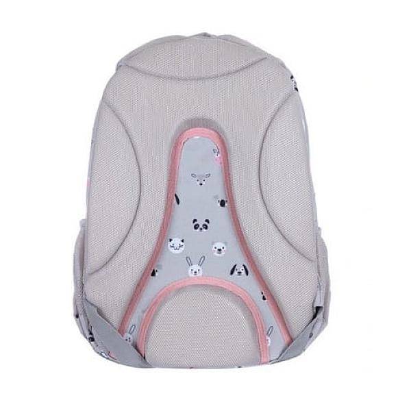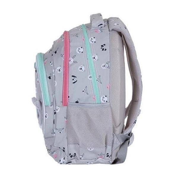 A minőségi ergonomikus iskolatáska elejét cicás szőrmés embléma dekorálja. A táska oldalán lévő apró minták között többféle kisállat bukkan fel. Strapabíró, erős anyagból készült, elsősöknek tökéletes választás lehet.