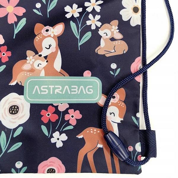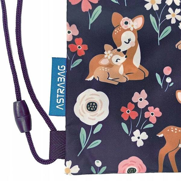 Őzikés, virágos mintájú ez az aprómintás, fekete alapszínű Astra őzikés tornazsák.