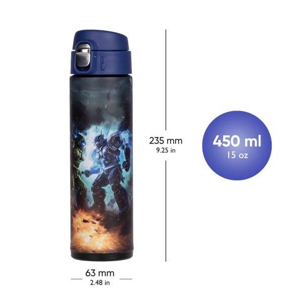 Ez a modern megjelenésű, 450 ml-es fém kulacs kiváló társ az alsós fiúk mindennapjaiban. Duplafalú kialakítása, szilikon ivórésze és gombnyomásra nyíló kupakja gondoskodik a kényelemről és a biztonságos használatról. Robotos vagány mintával