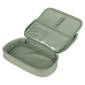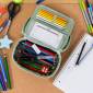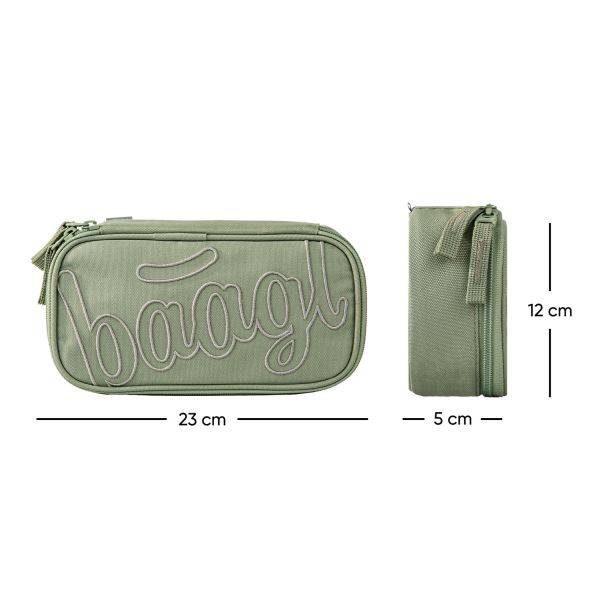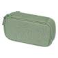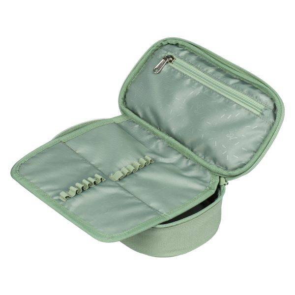 Ez a minőségi, ovális tolltartó elegáns menta zöld színével friss és modern megjelenést kölcsönöz. Praktikus kialakítása miatt ideális választás nagyobb diákok számára, akik szeretik rendszerezetten tárolni írószereiket. A cipzárral záródó tolltartó belseje mintás, így nemcsak funkcionális, hanem esztétikus is. A kihajtható belső fül mindkét oldalán rögzítőpántok segítik a ceruzák és tollak elhelyezését, míg a fedél belső részén egy cipzáras kis zseb található az apróbb kiegészítők, például radír vagy faragó számára. A fül alatt tágas rekesz kapott helyet, amelyben szabadon elférnek a különböző formájú iskolai eszközök. A tolltartó strapabíró anyagból készült, így hosszú távon is megbízható társ a mindennapi iskolai használatban.