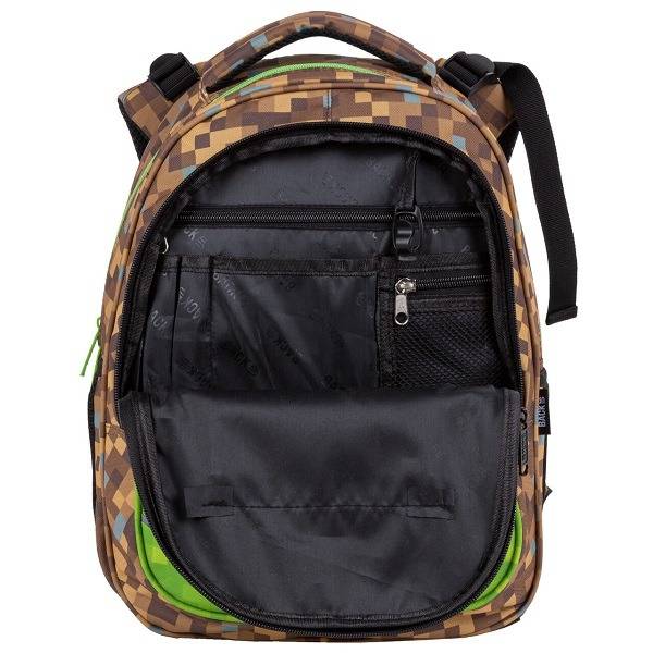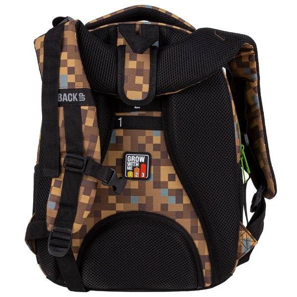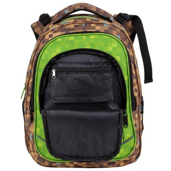 A BackUp iskolatáska szett tartalmazza az ergonomikus iskolatáskát, a kihajtható tolltartót és a tornazsákot. A táskát pixel kockás mintázat díszíti, amely a Minecraft játék hangulatát idézi, így minden kreatív kisfiút elvarázsol. Az ergonomikus kialakítás és a praktikus rekeszek ideálissá teszik a hátizsákot az alsós fiúk számára, akik szeretik a látványos és egyedi mintákat.