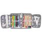 A tolltartó mintás belsejében gumipántokkal rögzíthetőek az írószerek, hogy a rend nem csak a fejekben, de a tolltartóban is meg legyen. A belső részen 18 db gumipánttal rögzíthetőek a ceruzák. Két kihajtható füllel rendelkezik, az itt található gumipántok alá radír, faragó, vonalzó rögzíthető, a fóliás zsebekbe órarendet tudsz csúsztatni.