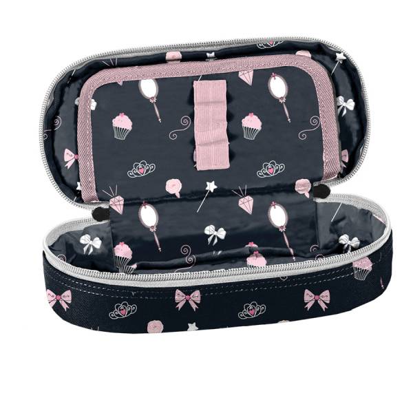 A minőségi tolltartó kis balerinák számára készült, a gyönyörű rózsaszín ruhás balett táncos körül hercegnős motívumok és finomságok szerepelnek. A balerinás ovális tolltartó fekete-rózsaszín színvilága elegáns és trendi.