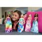 Barbie örömmel viseli ezt a csodás színekben pompázó hercegnő ruhát, amit mintha sok-sok kristály díszítene. Szépséges barna bőrét, sötét haját kiemeli a türkiz nyakék. Hajában tiarát visel, pink hajtincse a különleges ismertetőjele.