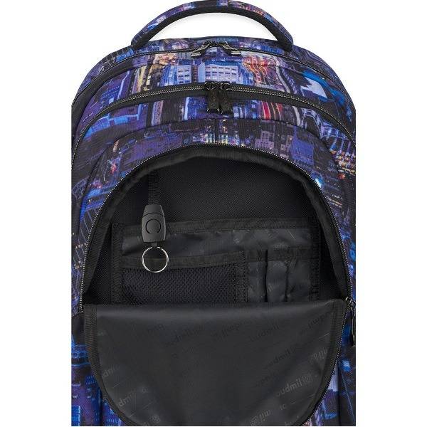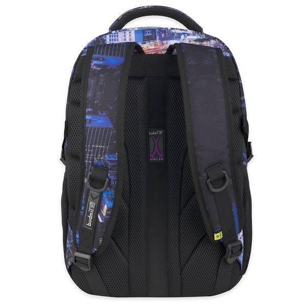 Feltűnő, feliratos Budmil iskolatáska, hátizsák - Explore the City. A lilás színvilágú, nagyméretű iskolai hátizsákot egy világváros képe díszíti. Az ovális formájú iskolatáska gerincbarát kiképzésének köszönhetően védi a gyerekek gerincét. Iskolatáskának, kiránduló hátizsáknak is tökéletes választás felsősöknek.
