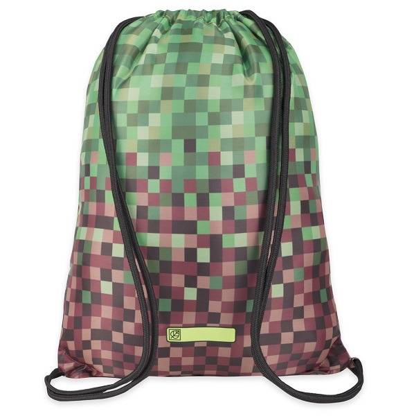 Minecraft játékból ismert pixeles mintázat borítja ezt a zöld, barna Budmil tornazsákot, mely remek választás felsős fiúknak az iskolai felszerelés kiegészítésére.