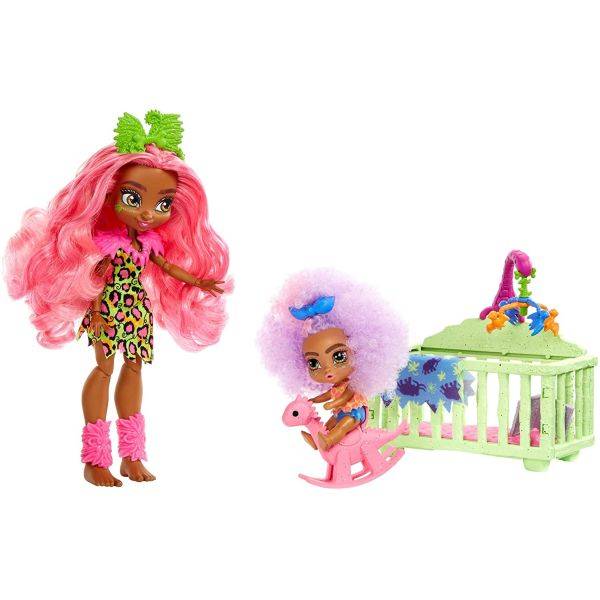 A Cave Club babák egy különleges világba vonzanak téged, ahol a színes hajú, feltűnő megjelenésű lányok apró, bébi őslényekkel barátkoznak. A Cave Club bébiszitter játékszett – Fernessa és Furrah babát tartalmazza, segítségükkel kipróbálhatod magad a babák gondozásában is.