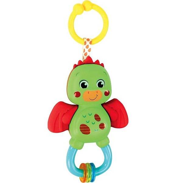 Baba játék 3 hónapos kortól. Élénk színű bábi sárkány hívja játszani a kicsiket. A különféle felületek sokféle játéklehetőséget kínálnak a piciknek, kellemes zörgő hangja pedig felkelti figyelmüket. Rágókaként és csörgőként is funkcionál, az érdes részek masszírozzák az ínyüket, így könnyítve a fogzást. Könnyen megfogható, és kézben tartható a babák számára.