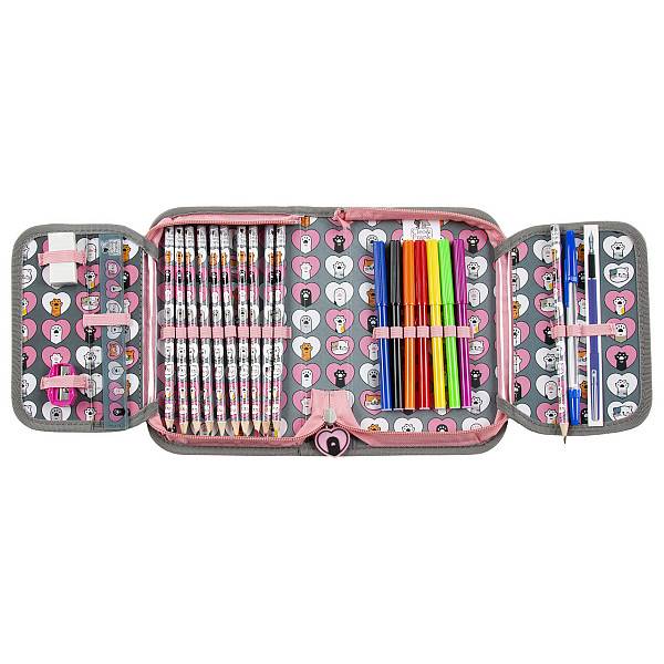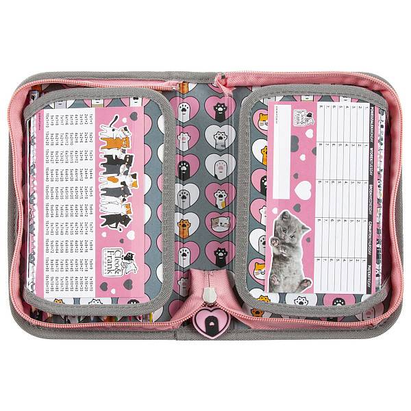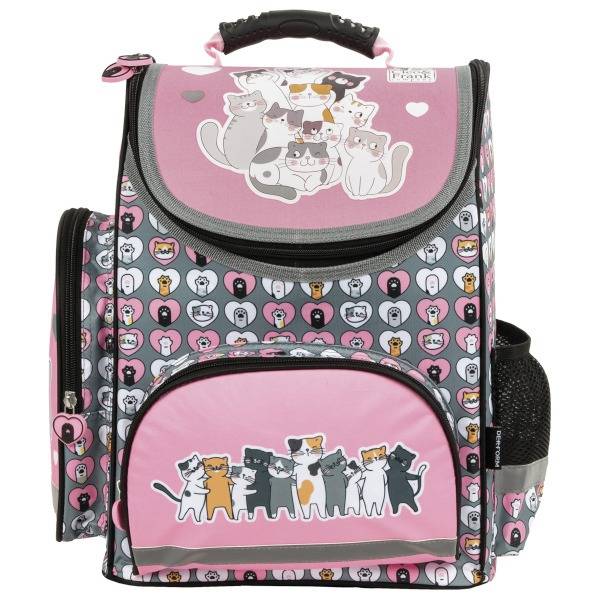 Dobozos kialakítású ez a cuki, cica mancsokkal és cicás rajzokkal díszített, rózsaszín színvilágú Cleo és Frank cicás ergonomikus iskolatáska - Friends. Az iskolatáska szett része az ergonomikus iskolatáska, a felszerelt kihajtható tolltartó és a tornazsák.