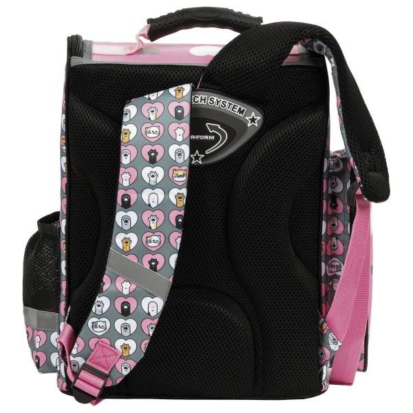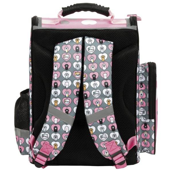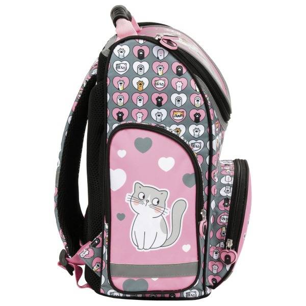 Az ölelkező cicákkal díszített iskolatáska praktikusan merevített kialakítású, így megkönnyíti a ki-bepakolást az elsősöknek. Ergonomikus hátrésze és vállpántja párnázott, ezzel segíti a helyes testtartást.