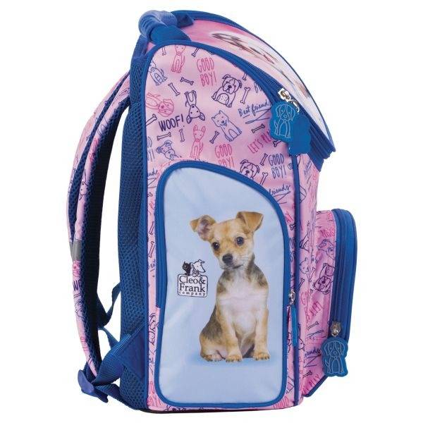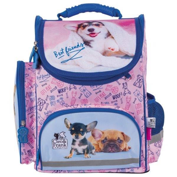 A Cleo és Frank kutyás ergonomikus iskolatáska - Best Friends minden elsős kislány igényeit kielégíti, rekeszeiben, zsebeiben sokféle iskolai felszerelés elfér. Ergonomikus iskolatáska kényelmes, párnázott hátrésszel és vállpántokkal. A praktikus dobozos kialakítású iskolatáska merev oldalfalai biztosítják az elsősöknek, hogy könnyedén tudjanak ki- és bepakolni, s tankönyveik kevésbé gyűrődjenek.