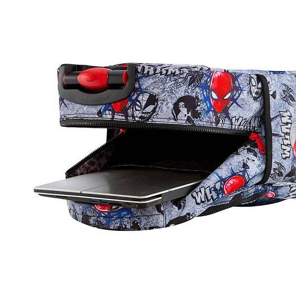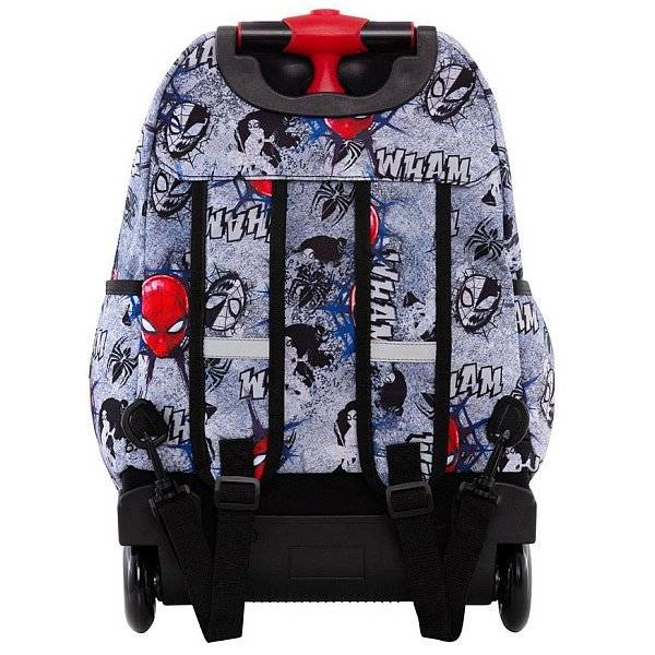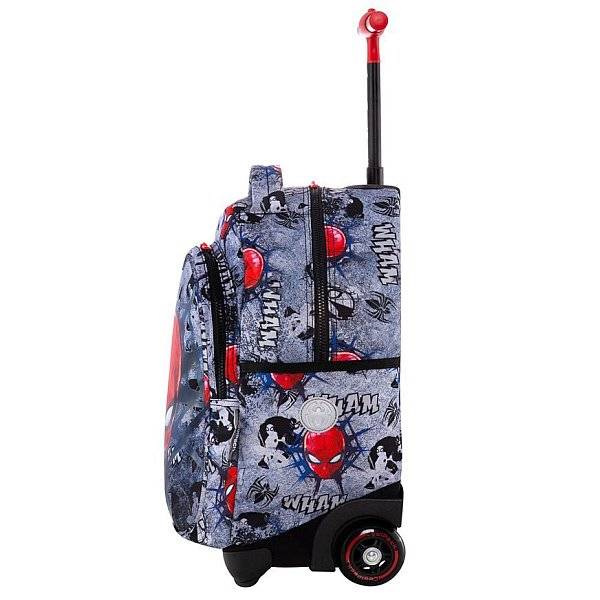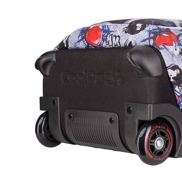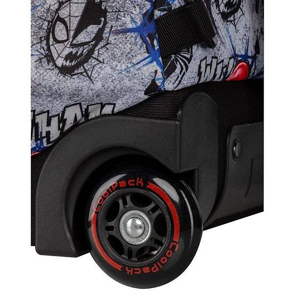 Pókember látványos maszkja és képregény minta díszíti ezt a szuperhősös Coolpack gurulós iskolatáskát. A Marvel filmek világát jeleníti meg a Spiderman mintával készült gurulós iskolatáska, melyet a kisebb iskolások részére ajánlunk. A táskát praktikus módon lehet háton hordani, vagy kényelmesen görgőin húzni, tehermentesítve ezáltal a gerincet. Vagány, divatos iskolatáska fiúknak.