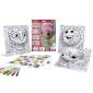Ha kiszínezted a Crayola filctollakkal 3 háttér egyikét, valamint a 3D-s hatáshoz szükséges egyik lapot, akkor pattintsd ki a 3D-s lap egyes részeit, és az utasításoknak megfelelően a füleket a kijelölt helyekre illeszd be, és már kész is a mestermű. A dobozban található matricákkal tovább díszítheted kedved szerint a képedet.