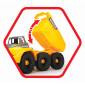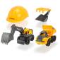 A játékautók kb. 25 cm méretűek, nagy méretű kerekeikkel könnyedén átmennek az akadályokon. A dömper billencses hátsó részéből egyszerűen kiönthető a kavics és homok, a kanalas kotró pedig oldalirányba is el tud fordulni.