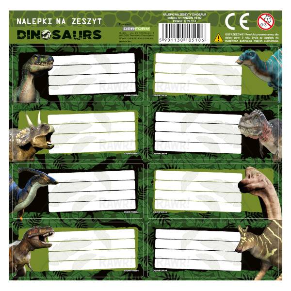 Dinoszauruszos füzetcímke 8 db-os - Lakeside