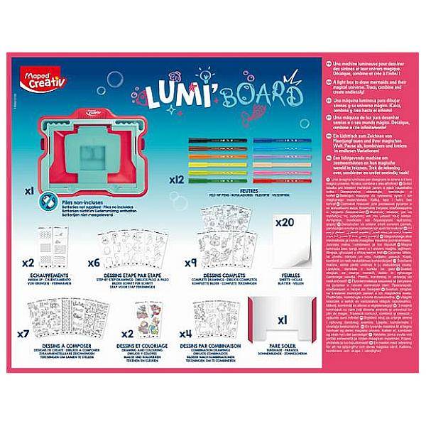 Fedezd fel a rajzolás varázsát a komplett rajzkészlettel, amely lépésről lépésre segíti a gyerekeket az alkotásban! A világítós rajztáblán a beépített fény megvilágítja a behelyezett fóliát, így az átrajzolás egyszerű és szórakoztató. Az 5 nehézségi szint lehetővé teszi a folyamatos fejlődést, miközben a hableányos rajzok extra varázslatot adnak az alkotáshoz.