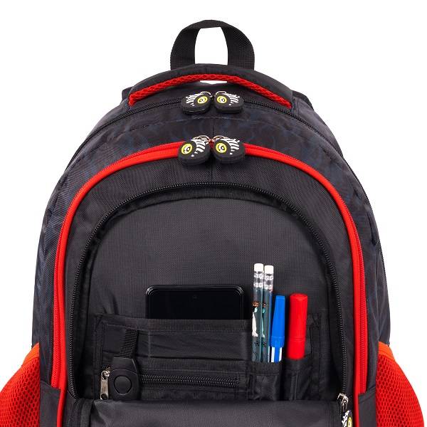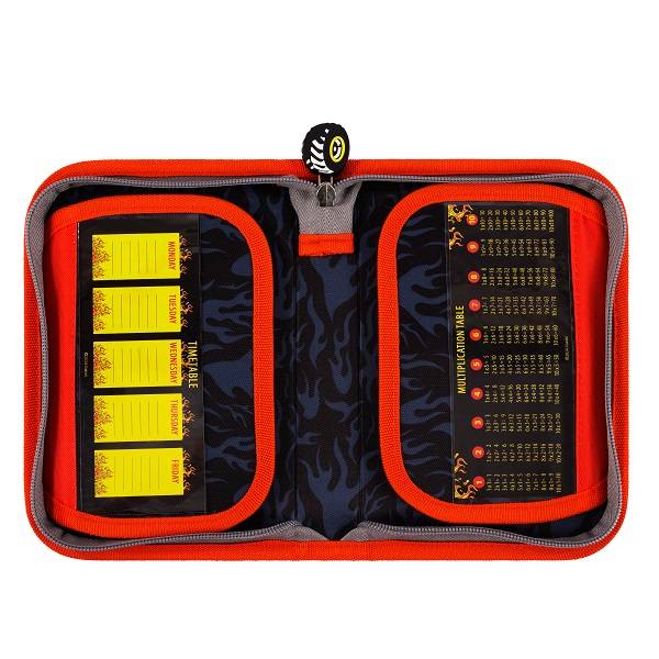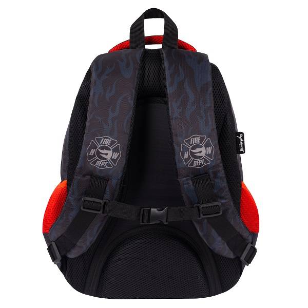 Az autós iskolatáska elejét egy tűzoltóautó monster truck változata mintázza. A vagány iskolatáskát a Hot Wheels pályák különleges birodalma ihlette. Elég merész vagy hogy bevállald ezt a menő hátizsákot a suliban?