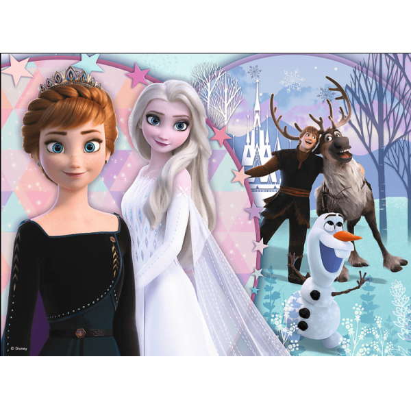 Arendelle királyságában a királyi család legidősebb lánya, Elza hercegnő különleges hatalom birtokában van: képes jeget és havat varázsolni a tenyerével. Az ő színes, kalandokkal teli történetét örökíti meg a mese és ez a kirakó is.