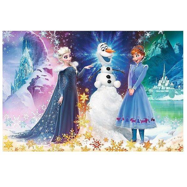 Az ismert Disney mese szépséges hercgnői és Olaf, a hóember láthatóak a minőségi puzzle színes képén. Állítsd össze a Jégvarázs maxi puzzle 24 db-os - Olaf kalandjai kirakós valamennyi elemét, s máris megtudod, mivel töltik az időt! Kirakott kép mérete 60 x 40 cm.