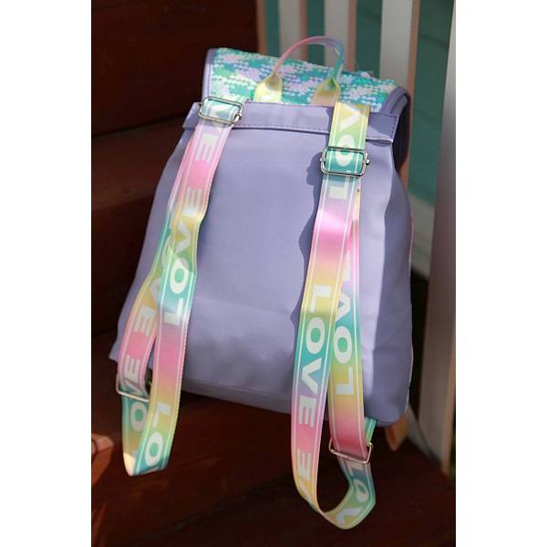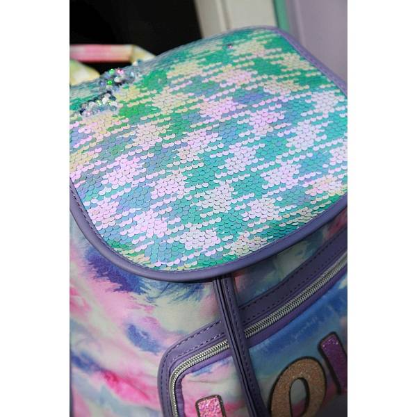 Egyedülálló megjelenésű hátizsák lányoknak, különleges pasztell szivárvány színben, flitteres és csillogó részletekkel az ultra csajos megjelenésért!