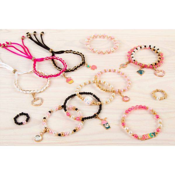 Álmodd meg, és alkoss a saját ízlésed és fantáziád alapján egy igazi, kreatív kiegészítőt a ruhatáradhoz! A Make it Real Juicy Couture – pink és csillogó ékszerek szett káprázatos színekkel és mintákkal érkezik hozzád, hogy sok-sok egyedi medállal ellátott karláncot tudj házilag megalkotni. Az elkészült ékszereidet csillogtasd meg bátran amerre jársz, és élvezd az elismerő dicséreteket!