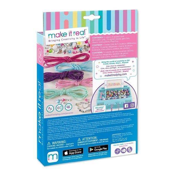 Csillogó, látványos kövekkel díszítheted a zsinórfonásos új karkötőidet, melyeket a Make it Real karkötő készítővel készítesz el. A mutatós karkötőkhöz minden szükséges eszköz a dobozban található. Válassz egy színes zsinórt, kövesd az útmutatóban leírtakat, hogy csinos zsinórfonással díszíthesd a karkötőt, majd rakj hozzá gyöngyöket ízlésed és kedved szerint. Engedd szárnyalni a kreativitásodat, tervezz bátran, alkoss kedvedre!