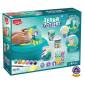 A készlet nemcsak a kreativitást és a finommotorikus készségeket fejleszti, hanem lehetőséget ad saját ötletek megvalósítására is. Minden műanyag alkatrész könnyen tisztítható vízzel, sőt a mosogatógépben is mosható (a motor eltávolítható), így az alkotás mindig élvezetes és higiénikus marad.