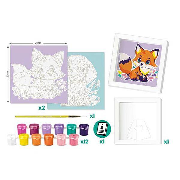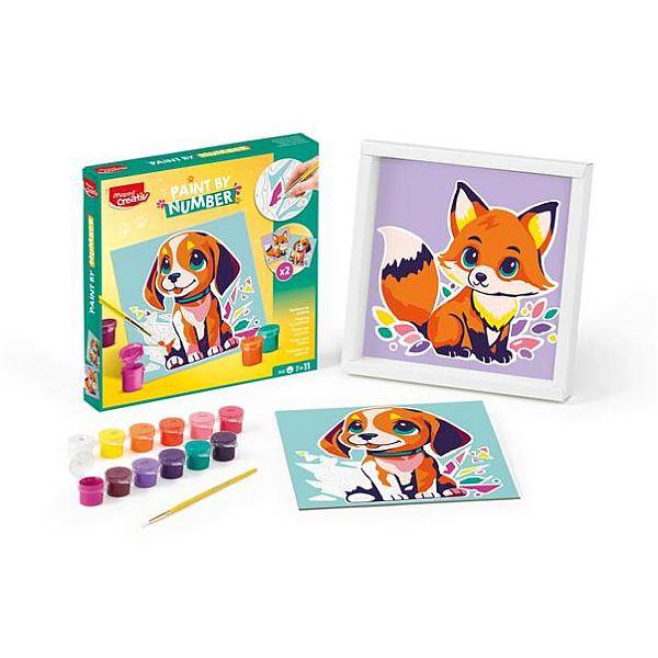 Kreatív szám szerinti kifestő – Kutyás és rókás kép – Engedd, hogy a gyerekek a számok és a színek segítségével saját műalkotást készítsenek! A kifestő egy különleges kutyás és rókás képet tartalmaz, amelyet a mellékelt akril festékekkel és a számok szerinti útmutatóval varázsolhatnak életre. A végeredmény valóban úgy néz ki, mintha egy igazi festmény lenne, így a gyerekek büszkén mutathatják meg alkotásukat.