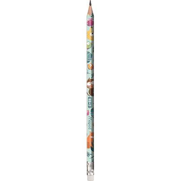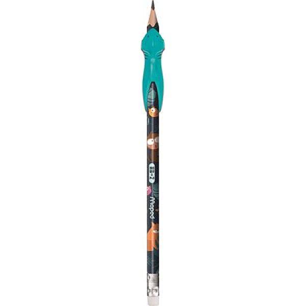 Cuki, állatmintás borítású ez a minőségi MAPED grafitceruza szett. A puha ceruzával könnyen megy a rajzolás és az írás. Formája nem a hagyományos henger, hanem fogást könnyítő háromszög. A HB keménységű grafit ceruza külseje vidám állatmintás. Végén radír található. Puha gumiból készült, cápa formájú ceruzafogóval.