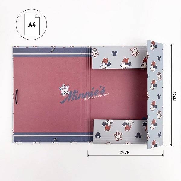 A minőségi Disney mappán Minnie egér alakja tűnik fel. A kemény borítású füzetbox segítségével könnyedén tárolhatók a füzetek akár a táskában is. A füzetbox segít rendezni a tanszereket és a gyűrődéstől is megóvja.