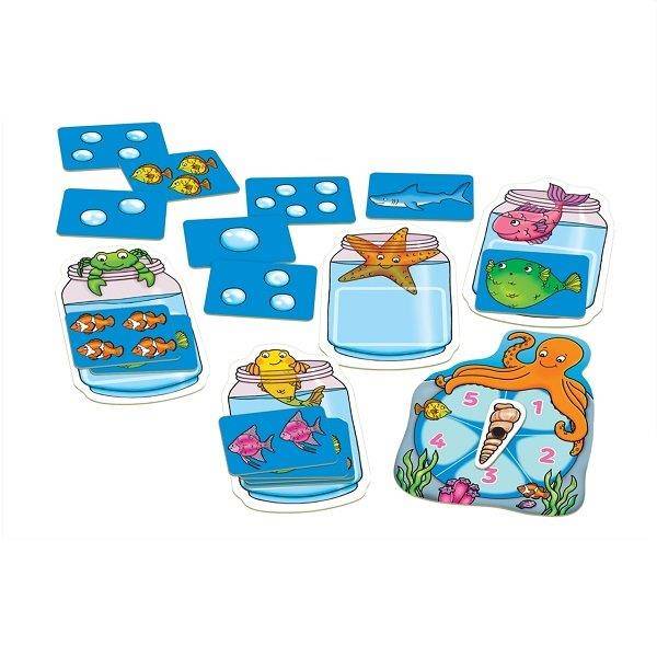 Játszva tanulhatják a gyerekek a számokat ezzel a szuper, halacskás társasjátékkal. Pörgesd meg a kereket, válaszd ki a megfelelő kártyát. Számold meg hány halacska került az akváriumodba. Gyűjts össz minél többet! De vigyázz, a cápát nagy ívben kerüld el, mert megeszi a halaidat!