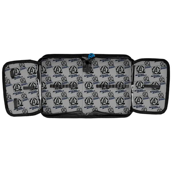 A tolltartó mintás belsejében gumipántokkal rögzíthetőek az írószerek. A 18 darab ceruza mellett helyet kaphat a tolltartóban a vonalzó, radír és hegyező, a füleken jegyzet és órarend.