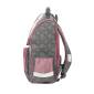 A pitypangos, szürke színvilágú iskolatáska szett része az ergonomikus iskolatáska, a felszerelt kihajtható tolltartó és a tornazsák.