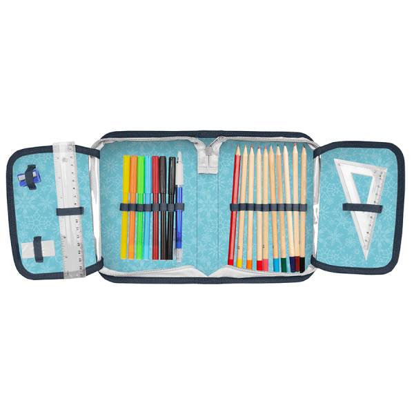 A hópelyhekkel borított kék tolltartón Elsa a Jégvarázs hercegnője bukkan fel. Alsós lányoknak ajánlott tolltartó, írószerekkel megtöltve, hogy ezzel már ne legyen gondod.
