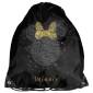 A divatos iskolatáska elején Minnie egér feje szófelhőben rajzolódik ki arany színnel, sok-sok MINNIE feliratból. A fekete-arany színkombináció igazán elegáns. Az ergonomikus iskolatáska Disney rajongó lányok számára trendi választás az iskolai felszereléshez.