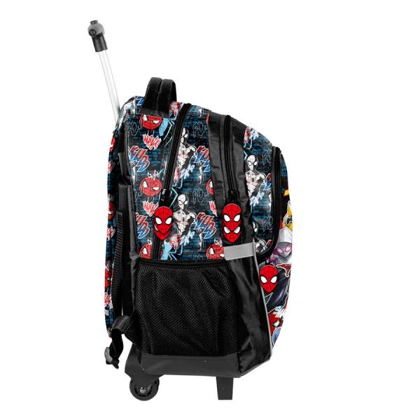 A praktikus kialakítású, gurulós iskolatáska mintáját a Pókverzum története és szereplői ihlették, elején Spiderman, Gwen és ellenségeik láthatók akció közben. A trendi pókemberes iskolai felszerelés minden fiúnak remek választás.