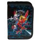 A kék színvilágú, szuperhősös iskolatáska szett része a gurulós iskolatáska, a kihajtható tolltartó és a tornazsák.