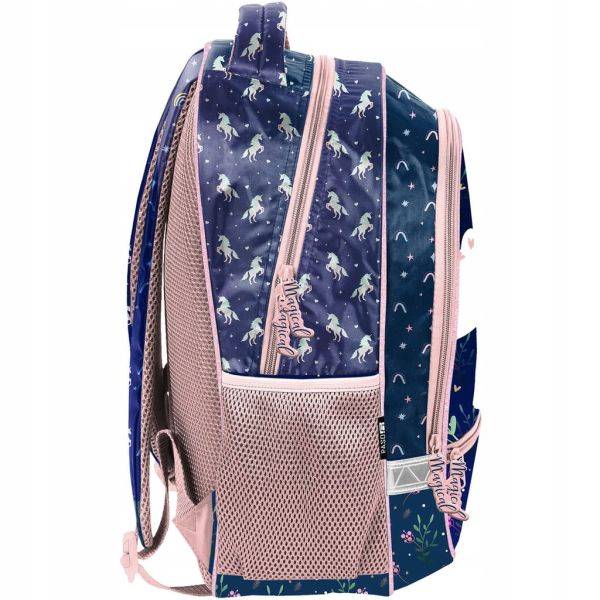 Varázslatos világba hív az unikornisos iskolatáska, mintha egy tündér mesébe csöppentél volna. Az iskolatáska sötétkék alapszíne remekül kiemeli a mesés unikornis alakját és a körülötte lévő virágokat.