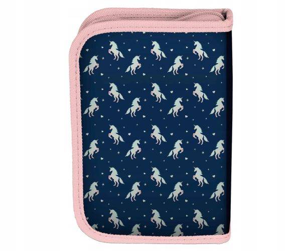 A mesefigurás, egyszarvús iskolatáska szett része az anatómiai iskolatáska, kihajtható tolltartó és a tornazsák.