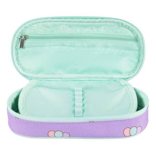 A lila színű, ovális formájú Pusheen cicás tolltartó egyszerre aranyos és praktikus választás minden iskolás számára. Vidám Pusheen minta díszíti, így stílusos kiegészítője lesz az iskolai felszerelésnek. Belsejében rendszerezés nélkül helyezhetők el az írószerek, ezért elsősorban nagyobb gyerekeknek ajánlott, akik szeretik a tágas, egyszerűen használható tolltartókat.