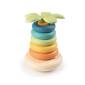 A kicsiknek a keskeny állványra kell felhelyezni a különböző színes gyűrűket, amelynek végeztével egy pasztel színekben játszó pálmafát kapnak.