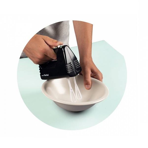 Legyél kis cukrász, vagy segíts a sütésben, főzésben otthon ezzel a Smoby TEFAL Játék kézimixerrel. Valósághű konyhai játékgép, nyomd meg a gombot és a keverőlapátok máris forognak. Tanuld meg a folyamatot, legyél profi a konyhai munkákban! A keverő mechanikusan, gombnyomásra működik, nem tartalmaz elektronikus alkatrészeket.