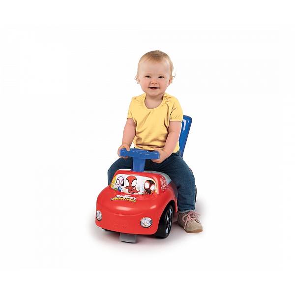 A Spiderman látható ezen a Póki és csodálatos barátai mese mintájával díszített bébitaxi és járássegítőn. A 2in1 jármű egyre nagyobb szabadságot ígér azoknak a gyerkőcöknek, akik már megunták az egy helyben ücsörgést, a babakocsiban zötyögést, de még nem képesek hosszú távon gyalogolni, vagy a hagyományos kis motorral közlekedni.