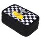 A fekete-fehér pepita mintás, háromszintes tolltartó elején egy aranyos sárga corgi kutyus szundikál, ami egyszerre cuki és vagány megjelenést kölcsönöz. A kiváló minőségű, 3 emeletes tolltartóban minden írószernek megvan a helye, így segíti a rendszerezett iskolai felkészülést. Cipzárral záródik, belsejében különböző méretű gumipántok biztosítják a ceruzák és tollak rögzítését. Tartós, fém cipzárhúzókája hosszú távon is megbízható használatot garantál.