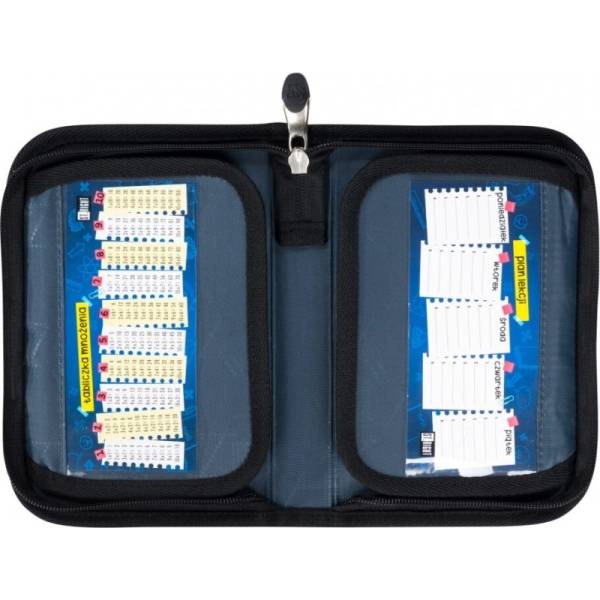 A minőségi St. Right tolltartó az ifjúság körében használt szlogenekkel dobja fel a koptatott szürke alapszínt. A praktikus kialakítású kihajtható tolltartóban számos írószert el tusz helyezni a gumipátok alatt. A tolltartó belső része szürkés színű, órarend és szorzótála található benne, hogy egy kis segítséget nyújtson a matematika órákon. Alsós lányok számára ajánlott.